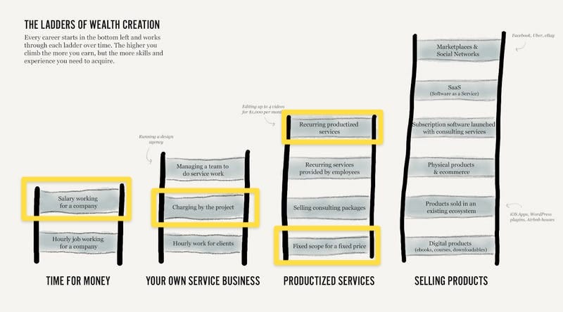 And so, courtesy of Nathan Barry’s wealth ladders illustration, I’m taking a job that lets me go from this: