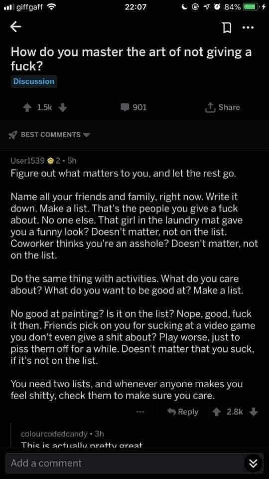 3. The most actionable way to master the art of not giving a f*ck, from a Redditor —